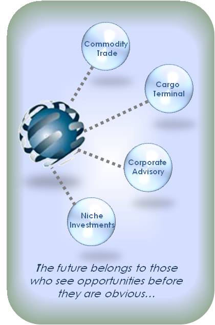 Our approach embraces volatility as a constant, our vision is dynamic and our execution precise. We develop global partnerships through trade, high level corporate advisory and strategic investment, to create a flexible, agile business web of strength, able to perform at optimal levels beyond the standard ‘best efforts’ basis, and in the process creating a multi- dimensional mutualistic environment of benefit. Our business network is defined by like-minded mostly emerging market alliances, strengthened by our developed economy partners, in delivering an environment of integrity where we choose to be successful for the benefit our group, our partners, and the communities and environment that we operate in.
